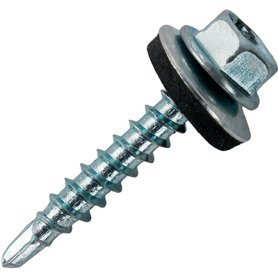 Саморез кровельный 5,5х25 мм с увеличенным сверлом РТ-5 15 мм и EPDM шайбой оцинкованный
